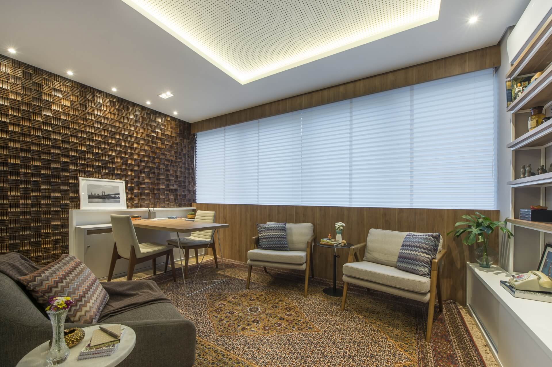 Com suas camadas bem definidas e levemente transparentes, tornam o espaço suave, delicado e com foco na valorização da luz natural.