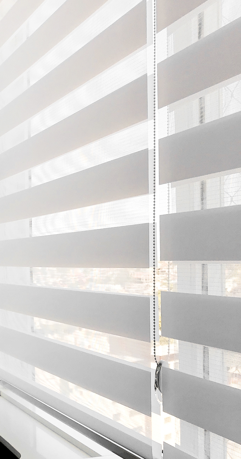 As coleções de tecidos translucidos ou semi blackouts intercalados com faixas transparentes  permitem que você escolha a maneira ideal de deixar a luz entrar, podendo escurecer levemente o ambiente, ou deixar mais claro e manter a privacidade.